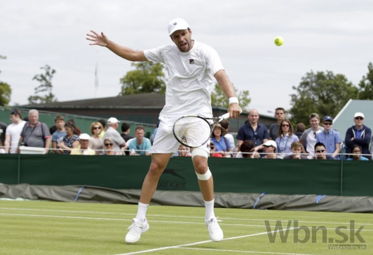 Švajčiarsky tenista Stan Wawrinka odvracia loptičku počas zápasu prvého kola na Wimbledone, v ktorom zvíťazil nad Portugalčanom Joaom Sousom. Londýn, 29. jún 2015. Foto: SITA/AP