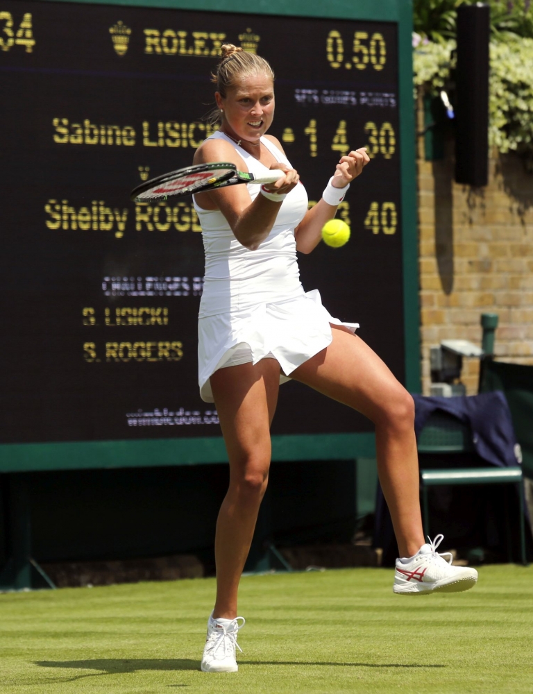 Nemecká tenistka Sabine Lisická počas zápasu prvého kola Wimbledonu, v ktorom zdolala Američanku Shelby Rogersovú 6:1, 6:3. Londýn, 27. jún 2016. Foto: SITA/AP