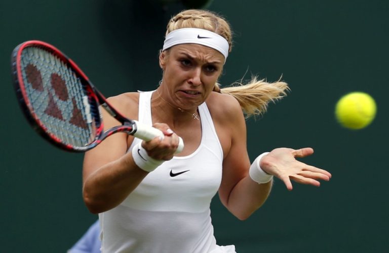 Chorvátka Donna Vekičová počas zápasu prvého kola Wimbledonu, v ktorom podľahla Američanke Venus Williamsovej 6:7 (3), 4:6. Londýn, 27. jún 2016. Foto: SITA/AP