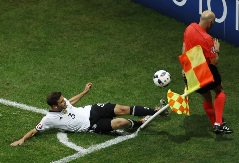 Nemecký futbalista Jonas Hector počas zápasu proti Ukrajine na majstrovstách Európy. Lille, 12. jún 2016. Foto: SITA/AP