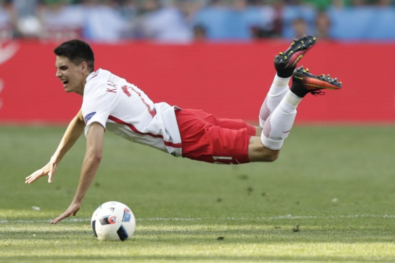 Poľský futbalista Bartosz Kapustka počas zápasu proti Severnému Írsku na majstrovstvách Európy. Nice, 12. jún 2016. Foto: SITA/AP
