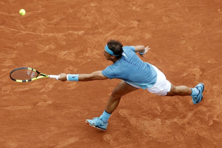 Španielsky tenista Rafael Nadal počas zápasu prvého kola na Roland Garros, v ktorom deklasoval Austrálčania Sama Grotha trikrát 6:1. Paríž, 24. máj 2016. Foto: SITA/AP