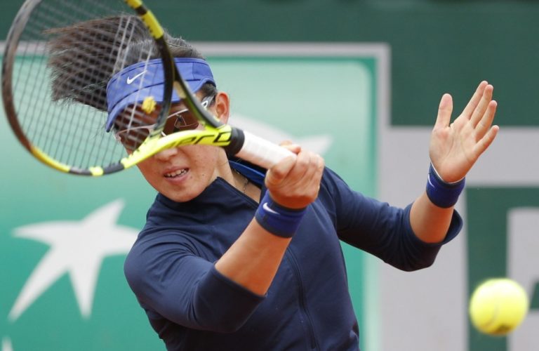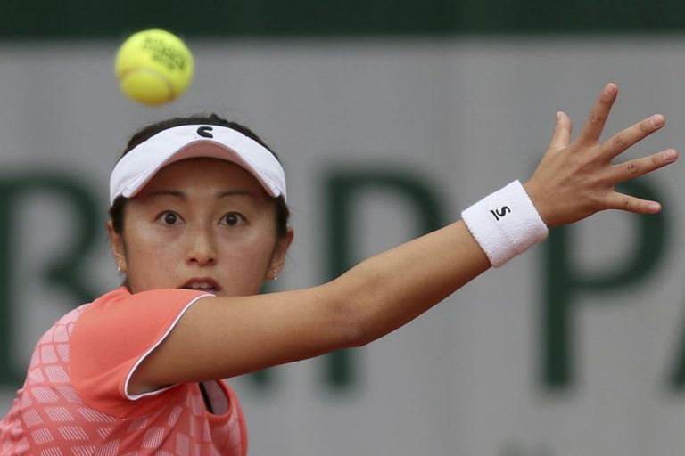 Čínska tenistka Čeng Saj-saj počas zápasu prvého kola Roland Garros, v ktorom podľahla Slovenke Dominike Cibulkovej 3:6, 1:6. Paríž, 24. máj 2016. Foto: SITA/AP