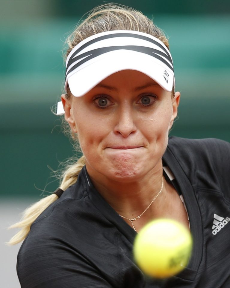 Nemecká tenistka Angelique Kerberová počas zápasu prvého kola na Roland Garros, v ktorom prekvapujúco podľahla Holanďanke Kiki Bertensovej 2:6. 6:3, 3:6. Paríž, 24. máj 2016. Foto: SITA/AP