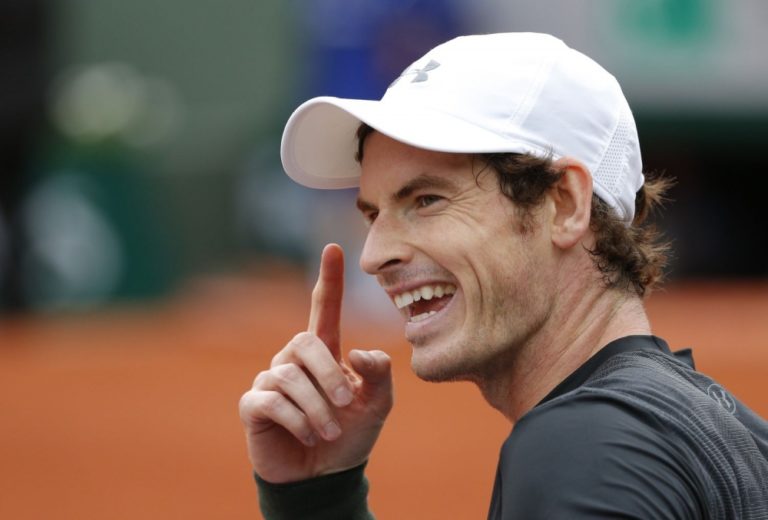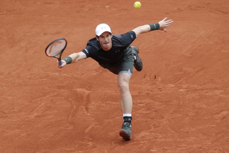 Britský tenista Andy Murray počas zápasu prvého kola na Roland Garros, v ktorom v päťsetovej bitke zdolal Čecha Radka Štěpánka 3:6, 3:6, 6:0, 6:3, 7:5. Paríž, 24. máj 2016. Foto: SITA/AP