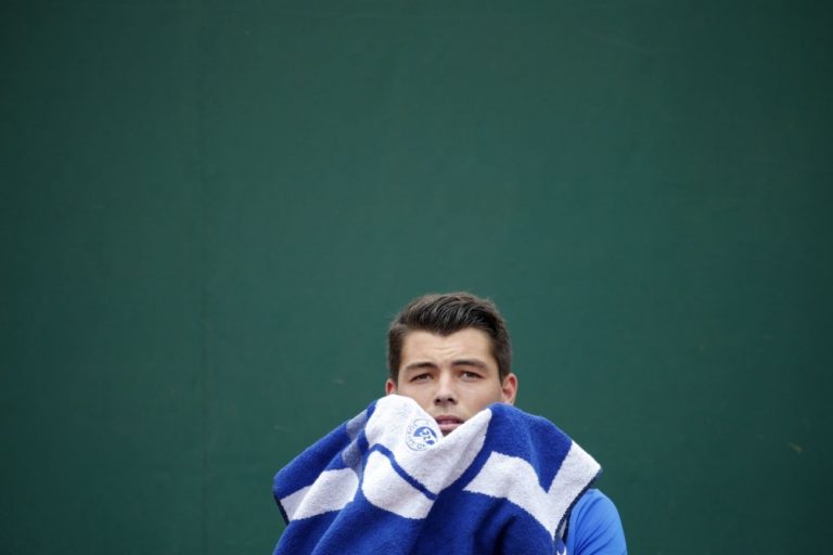 Americký tenista Taylor Fritz počas zápasu prvého kola Roland Garros, v ktorom prehral s Chorvátom Bornom Čoričom 3:6, 1:6, 3:6. Paríž, 24. máj 2016. Foto: SITA/AP