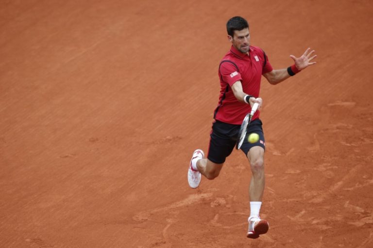 Taliansky tenista Fabio Fognini odvracia loptičku počas zápasu prvého kola na Roland Garros proti Španielovi Marcelovi Granollersovi. Paríž, 24. máj 2016. Foto: SITA/AP