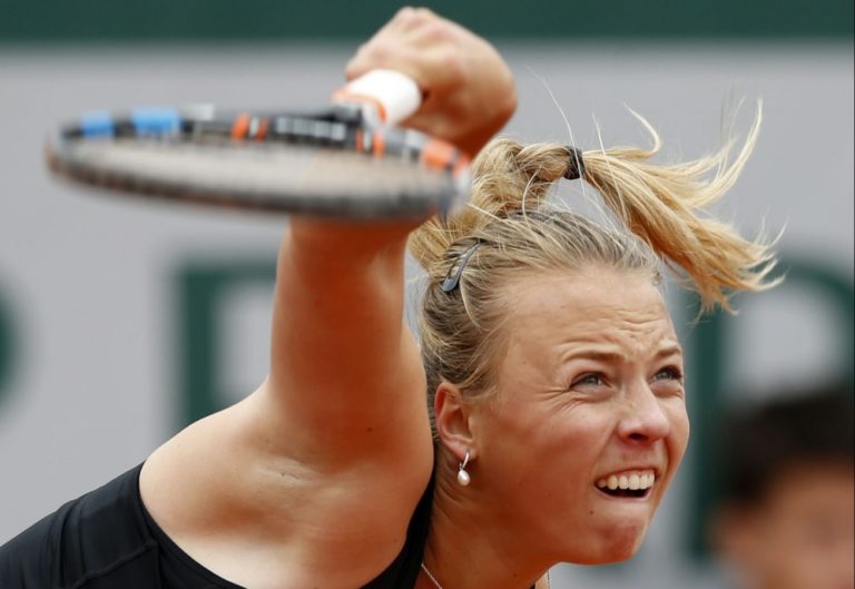 Estónska tenistka Anett Kontaveitová počas zápasu prvého kola na Roland Garros, v ktorom tesne podľahla Američanke Venus Williamsovej dvakrát 6:7. Paríž, 24. máj 2016. Foto: SITA/AP