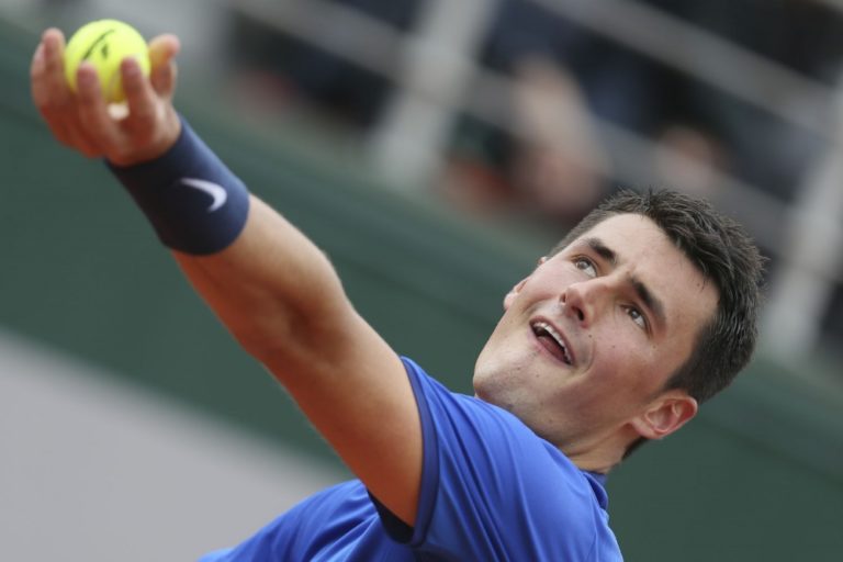 Austrálsky tenista Bernard Tomic počas zápasu prvého kola Roland Garros, v ktorom porazil Američana Briana Bakera 6:3, 6:4, 6:4. Paríž, 24. máj 2016. Foto: SITA/AP