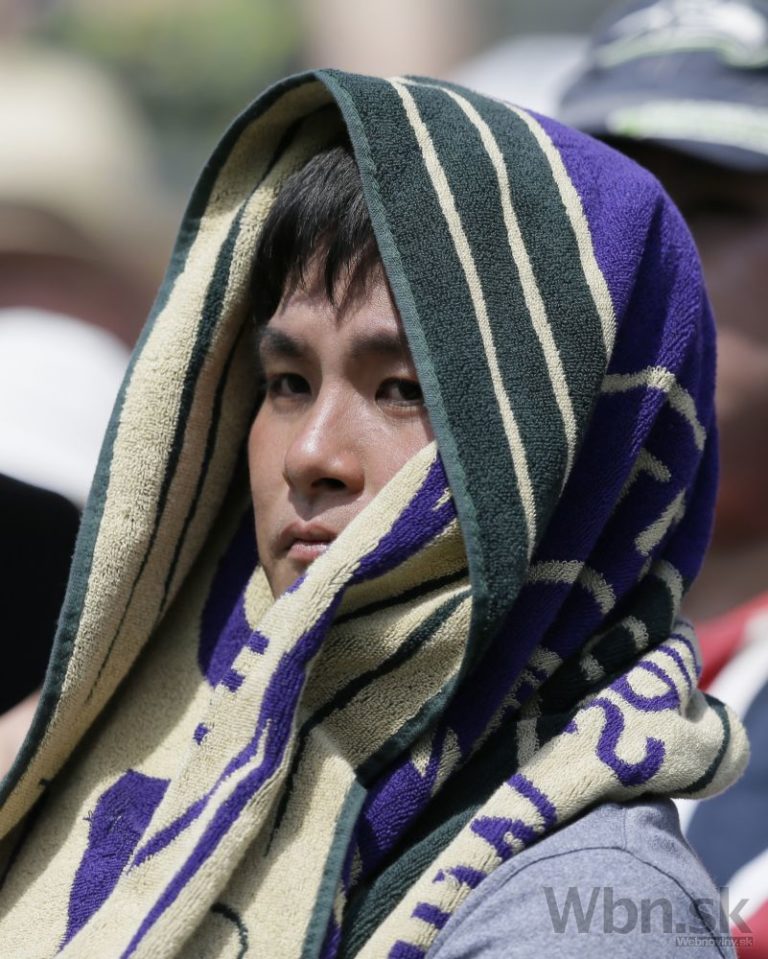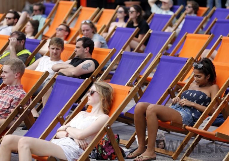 Deti sa osviežujú počas sledovania tenisového zápasu vo Wimbledone na veľkoplošnej obrazovke. Foto: SITA/AP