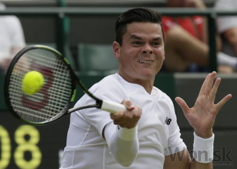 Kanaďan Milos Raonic počas zápasu s Nemcom Tommym Haasom, ktorého zdolal 6:0, 6:2, 6:7, 7:6. Foto: SITA/AP