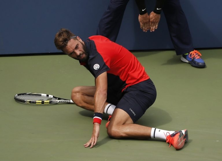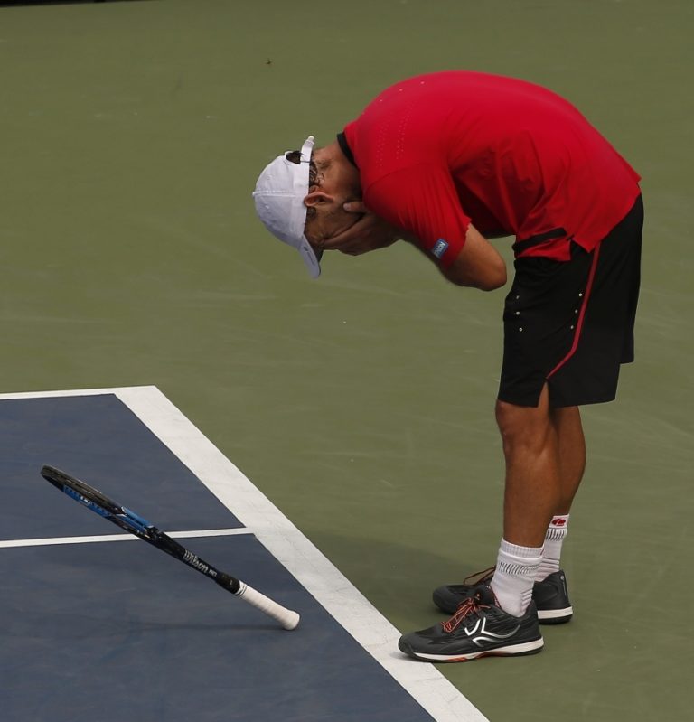 Francúz Benoit Paire vstáva z kurtu po strate loptičky v prospech súpera v zápase 2. kola US Open, 31. august 2016 New York. Foto: SITA/AP