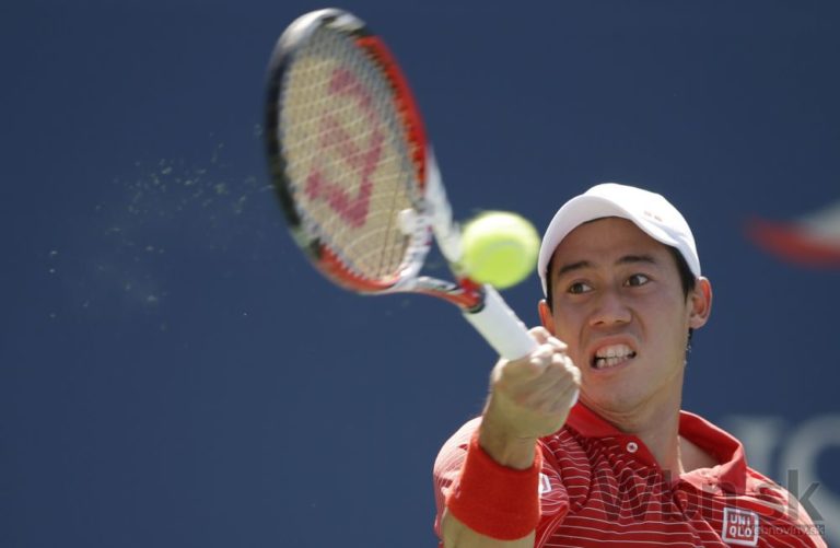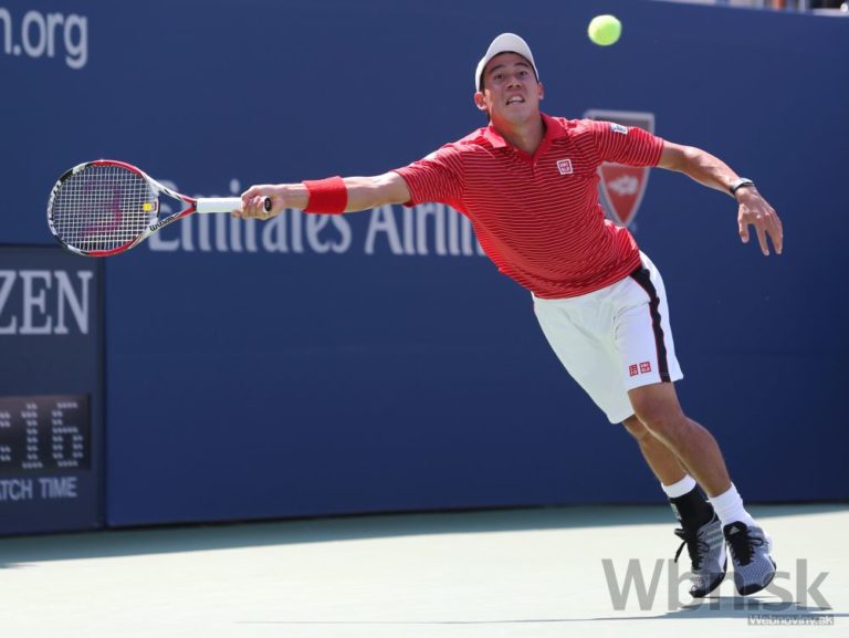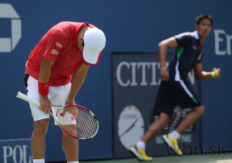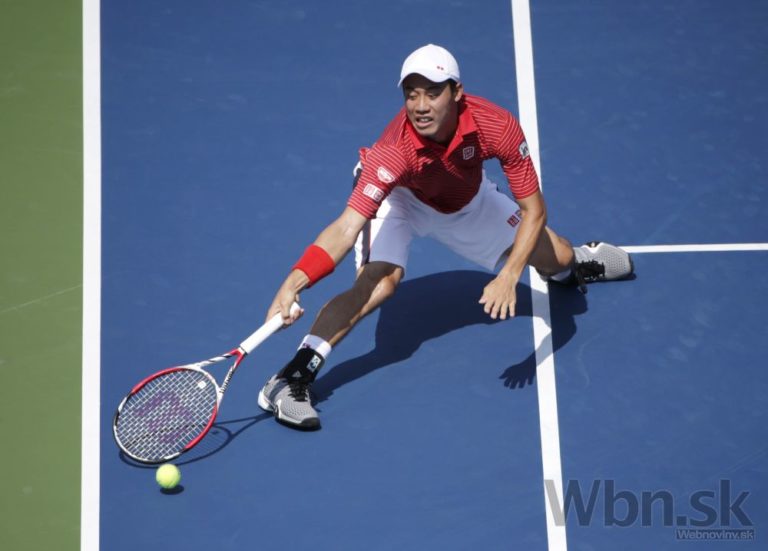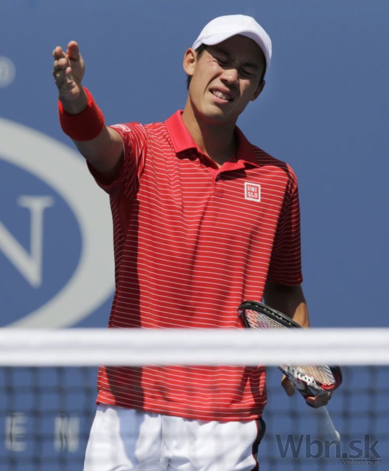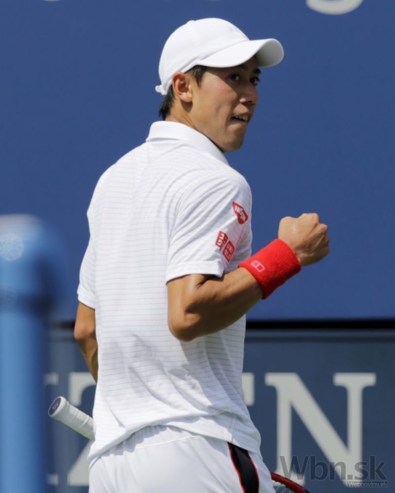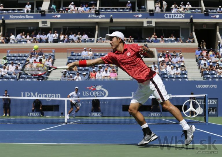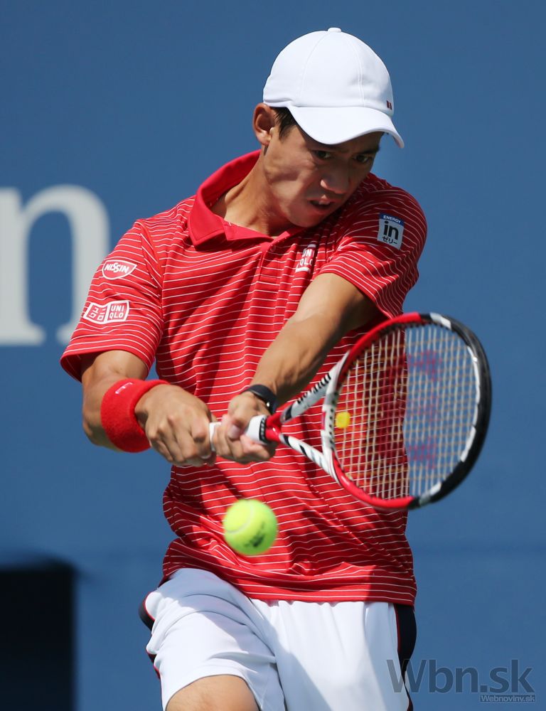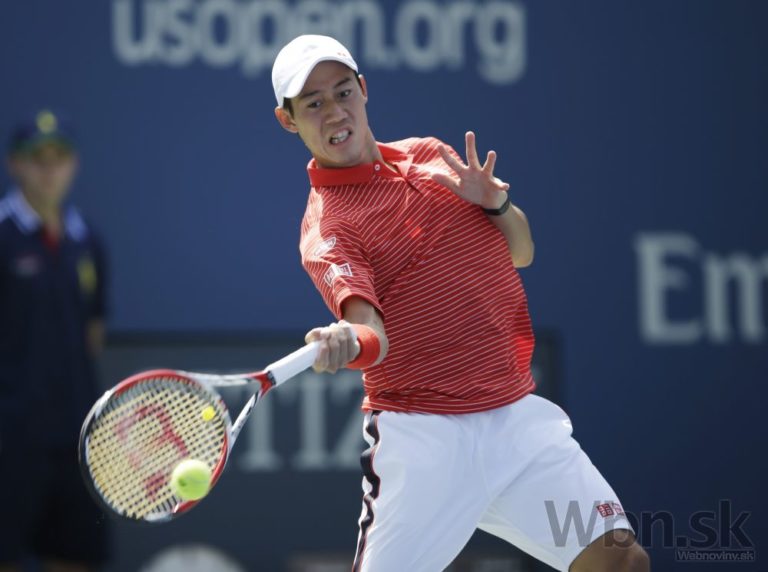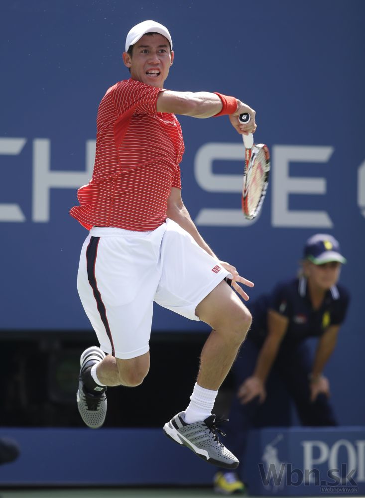 Japonský tenista Kei Nišikori počas semifinálového zápasu na US Open, v ktorom prekvapujúco porazil lídra renkingu Novaka Djokoviča za 172 minút 6:4, 1:6, 7:6 (4), 6:3. Foto: SITA/AP