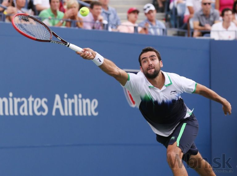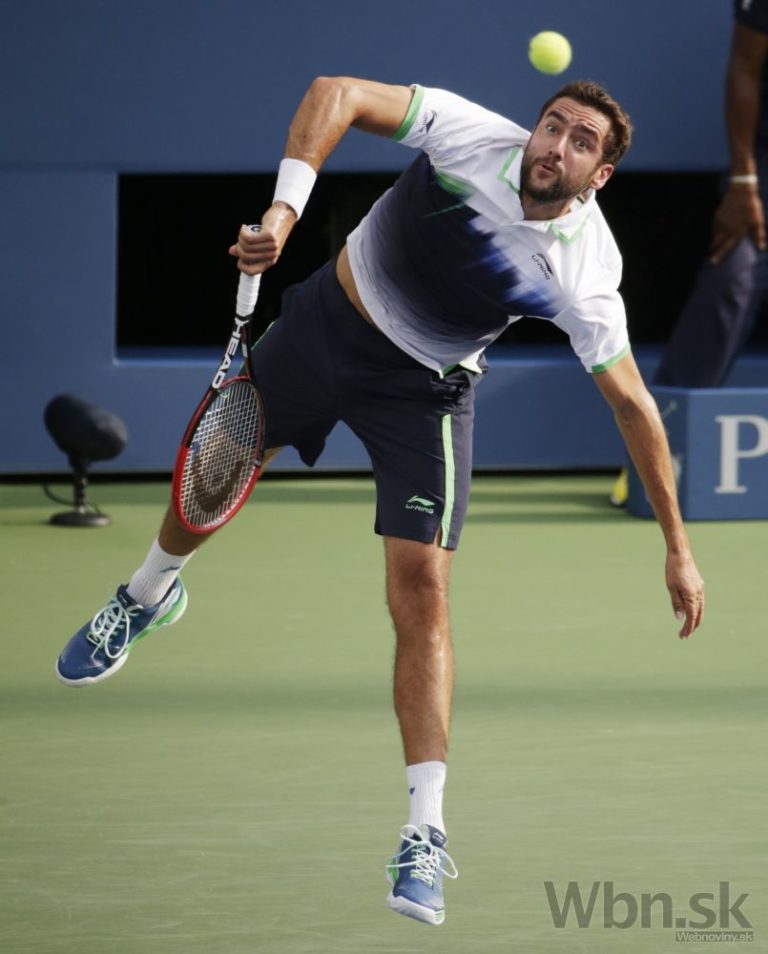 Chorvátsky tenista Marin Čilič počas semifinálového zápasu na US Open, v ktorom prekvapujúco hladko porazil nasadenú dvojku Švajčiara Rogera Federera 6:3, 6:4, 6:4. Foto: SITA/AP