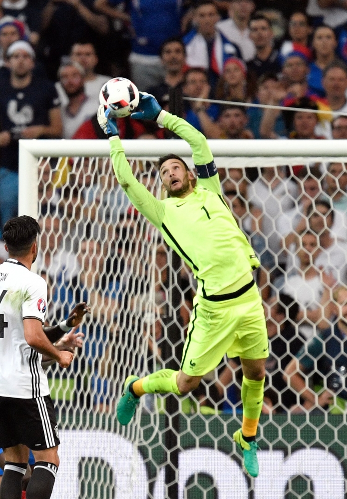 Zákrok francúzskeho brankára Huga Llorisa počas semifinálového zápasu proti Nemecku na majstrovstvách Európy. Marseille, 7. júl 2016. Foto: SITA/AP