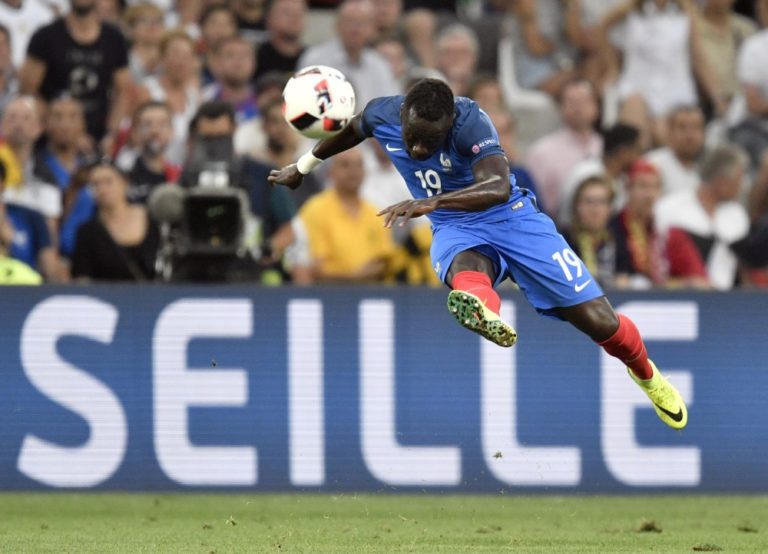Francúzsky futbalista Bacary Sagna hlavičkuje loptu počas semifinálového zápasu proti Nemecku na majstrovstvách Európy. Marseille, 7. júl 2016. Foto: SITA/AP