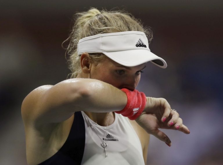 Dánska tenistka Caroline Wozniacka počas semifinálového zápasu US Open, v ktorom podľahla Angelique Kerberovej 4?6, 3:6. New York, 8. september 2016. Foto: SITA/AP