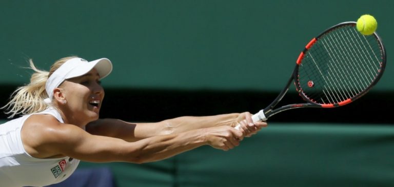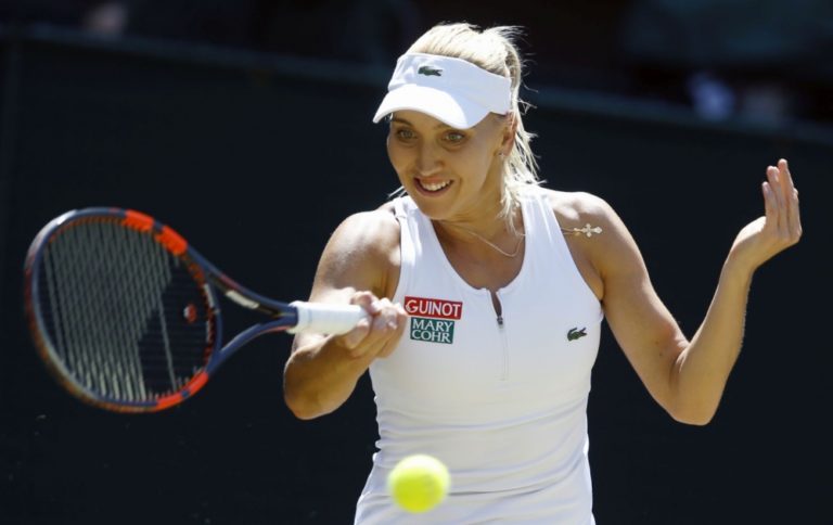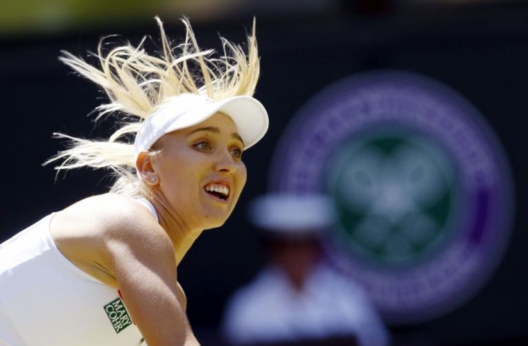 Ruská tenistka Jelena Vesninová počas semifinálového zápasu na Wimbledone, v ktorom podľahla líderke svetového rebríčka Serene Williamsovej 2:6, 0:6. Londýn, 7. júl 2016. Foto: SITA/AP