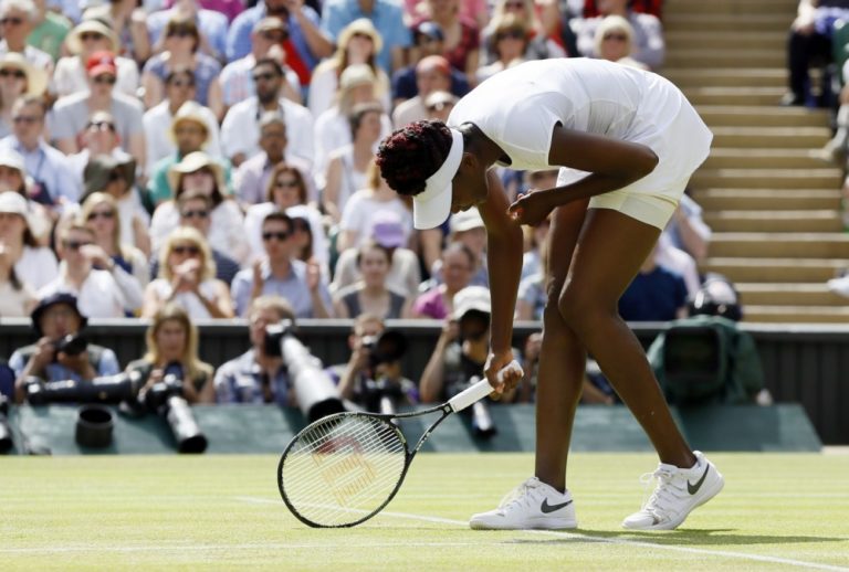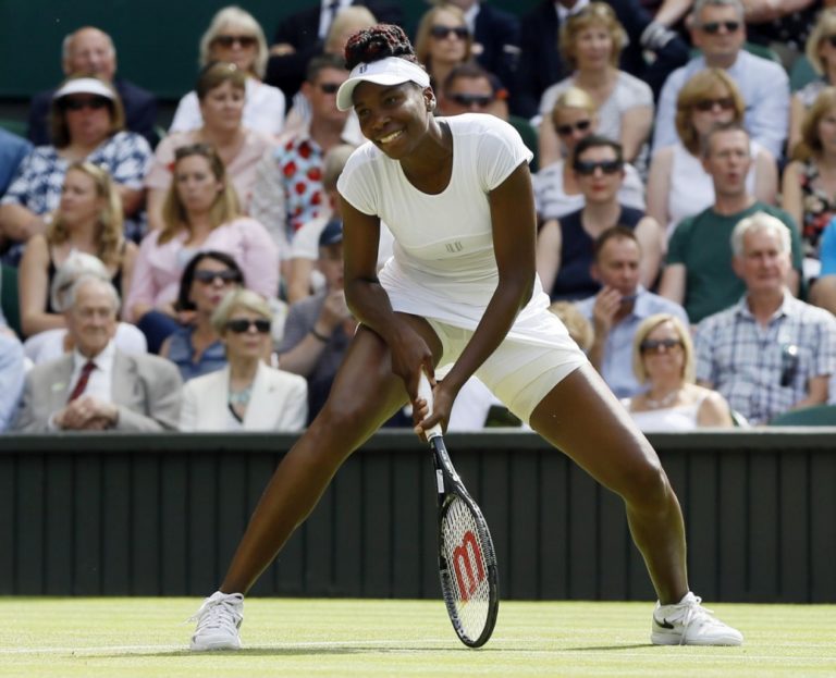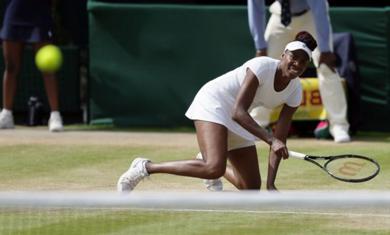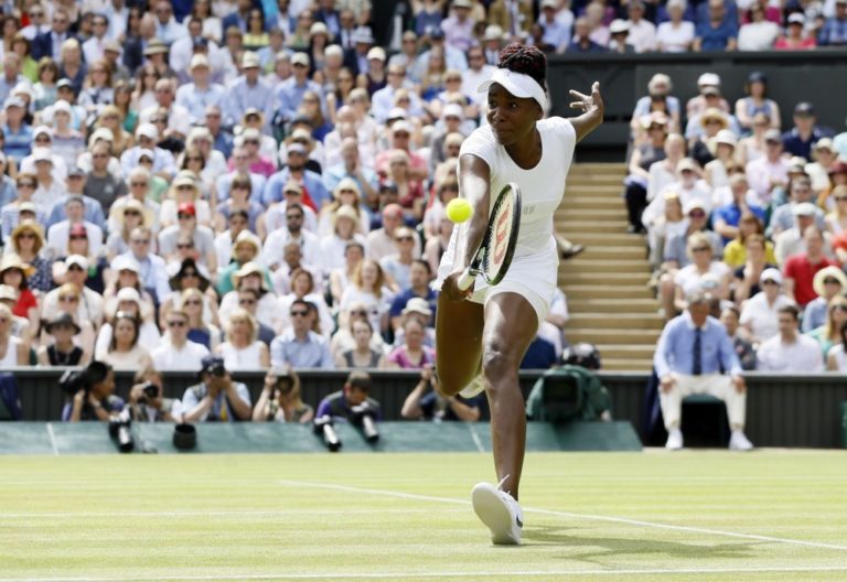 Americká tenistka Venus Williamsová počas semifinálového zápasu na Wimbledone, v ktorom podľaha Nemke Angelique Kerberovej dvakrát 4:6. Londýn, 7. júl 2016. Foto: SITA/AP