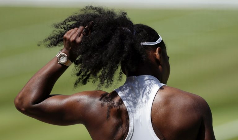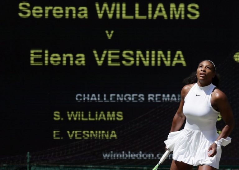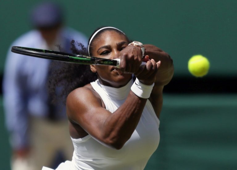 Americká tenistka Serena Williamsová počas semifinálového zápasu na Wimbledone, v ktorom zdolala Rusku Jelenu Vesninovú 6:2, 6:0. Londýn, 7. júl 2016. Foto: SITA/AP