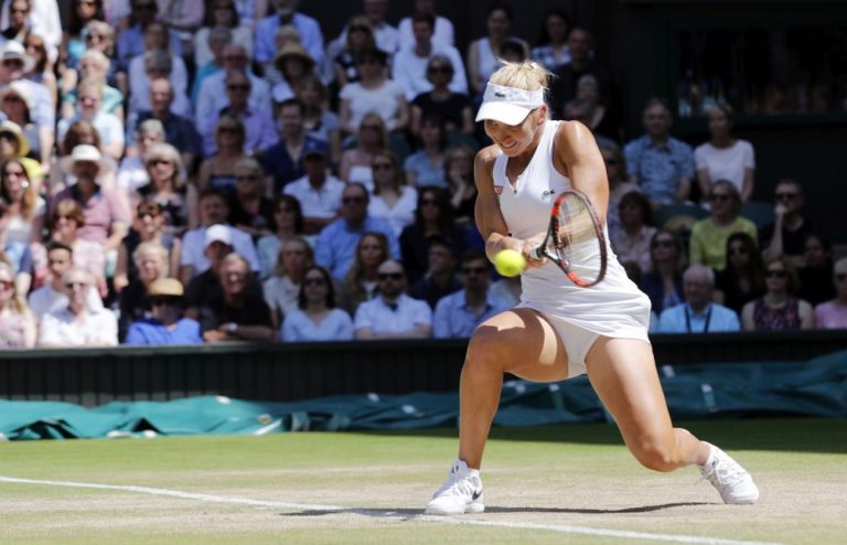 Nemecká tenistka Angelique Kerberová počas semifinálového zápasu na Wimbledone, v ktorom zdolala Američanku Venus Williamsovú dvakrát 6:4. Londýn, 7. júl 2016. Foto: SITA/AP