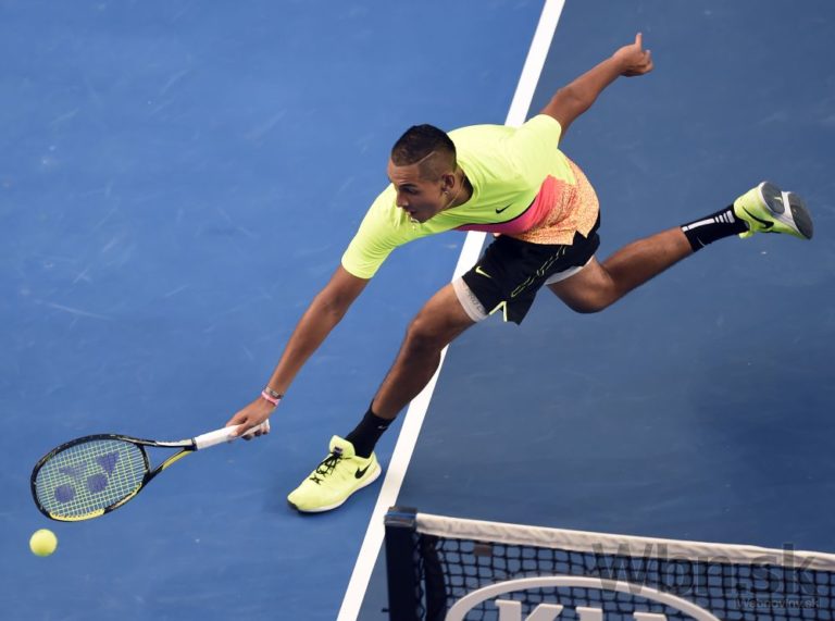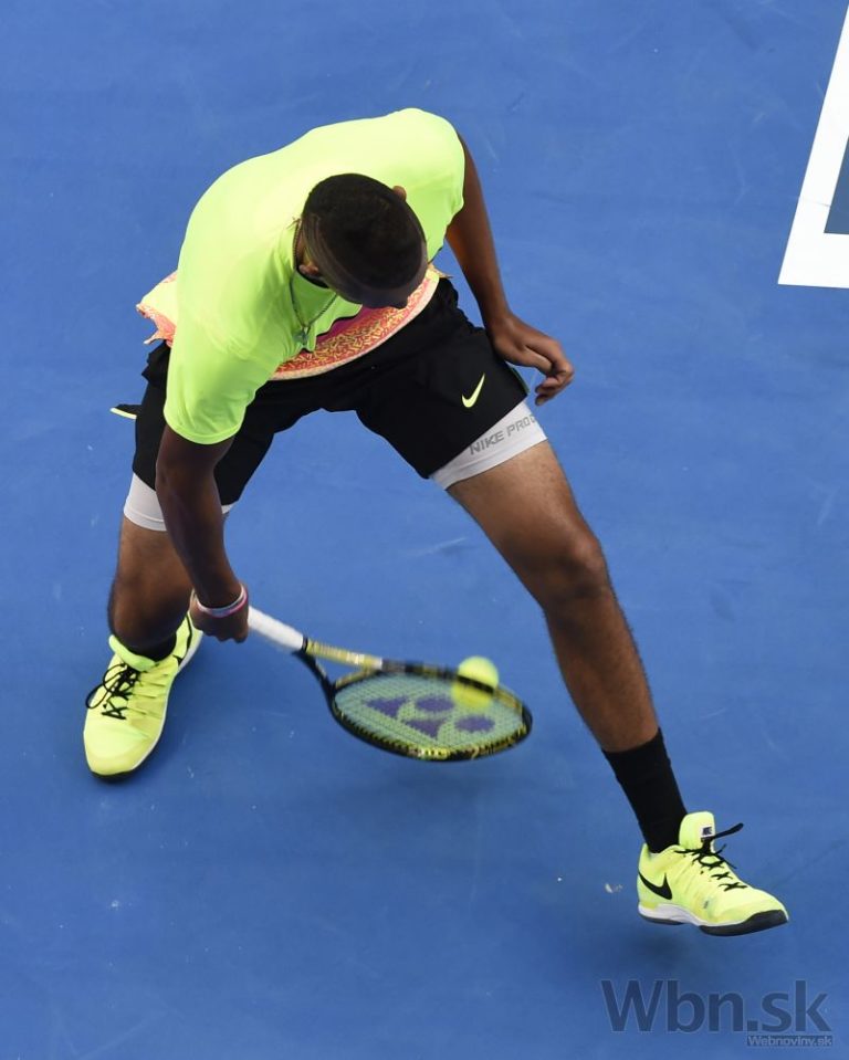 Austrálsky tenista Nick Kyrgios počas osemfinálového zápasu na Australian Open, v ktorom v päťsetovej bitke porazil Taliana Andreasa Seppiho 5:7, 4:6, 6:3, 7:6 (5), 8:6. Melbourne, 25. január 2015. Foto: SITA/AP