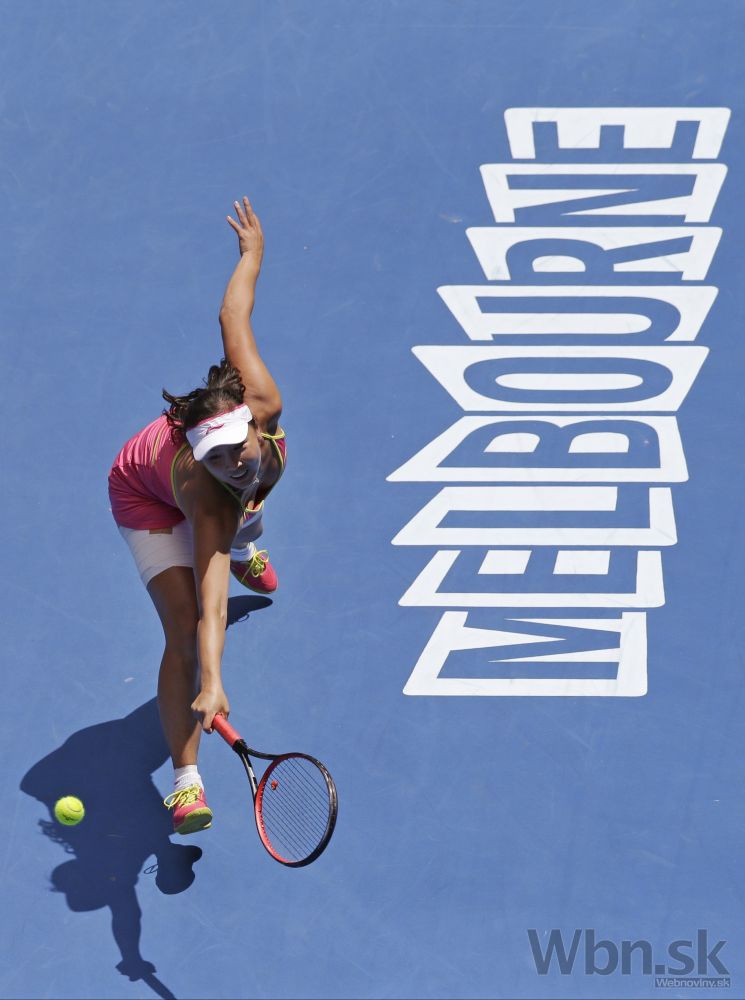 Čínska tenistka Šuaj Pcheng počas osemfinálového zápasu na Australian Open, v ktorom prehrala s Ruskou Mariou Šarapovovou 3:6, 0:6.. Melbourne, 25. január 2015. Foto: SITA/AP