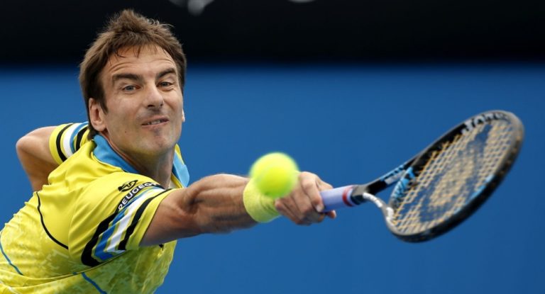 Španielsky tenista Tommy Robredo počas zápasu 2. kola Australian Open, v ktorom podľahol Kanaďanovi Milosovi Raonicovi 6:7, 6:7, 5:7. Melbourne, 21. január 2016. Foto: SITA/AP
