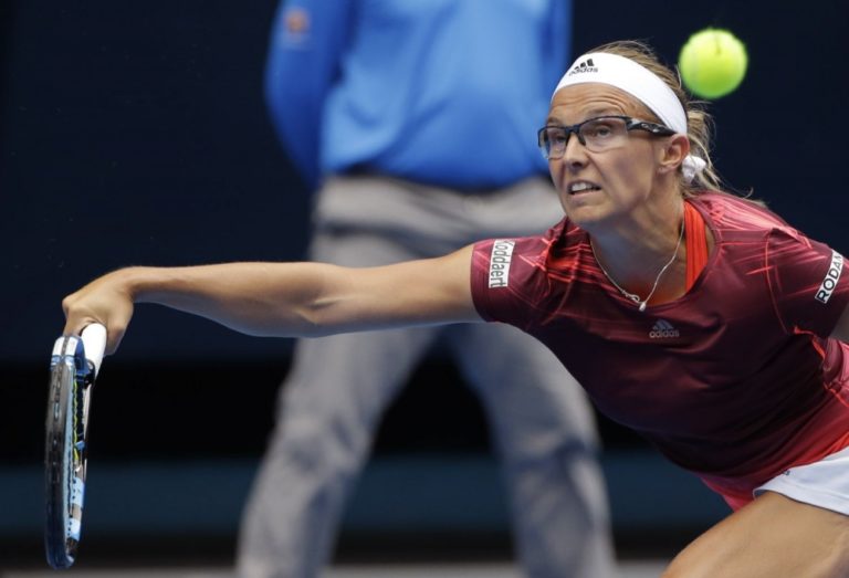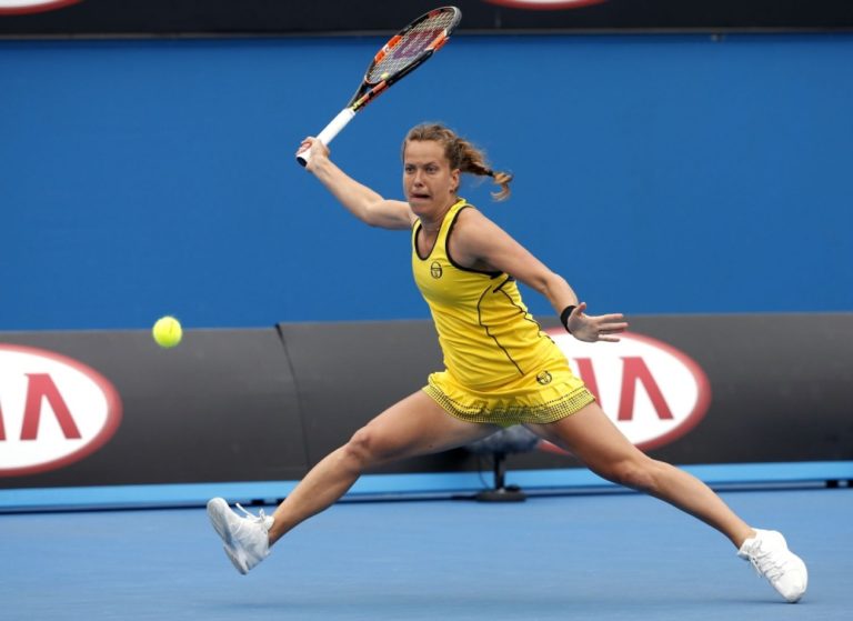 Belgická tenistka Kirsten Flipkensová počas zápasu 2. kola Australian Open, v ktorom podľahla Španielke Garbine Muguruzovej-Blancovej 4:6. 2:6. Melbourne, 21. január 2016. Foto: SITA/AP