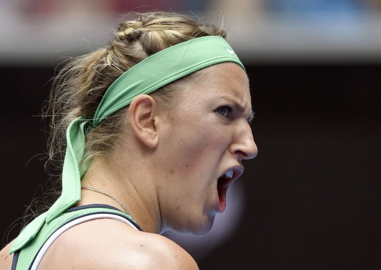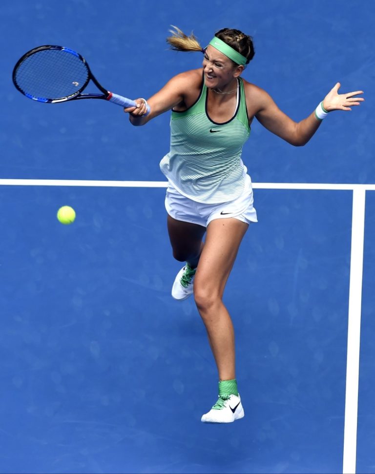 Bieloruská tenistka Viktoria Azarenková počas zápasu 2. kola Australian Open, v ktorom zdolala Danku Koviničovú z Čiernej Hory 6:1, 6:2. Melbourne, 21. január 2016. Foto: SITA/AP