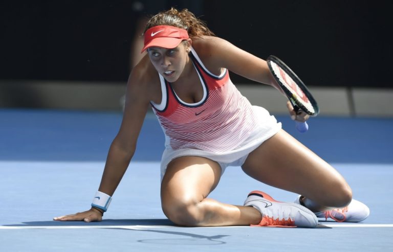 Americká tenistka Madison Keysová počas zápasu 2. kola Australian Open, v ktorom zdolala Ukrajinku Jaroslavu Švedovovú 6:7, 6:3, 6:3. Melbourne, 21. január 2016. Foto: SITA/AP