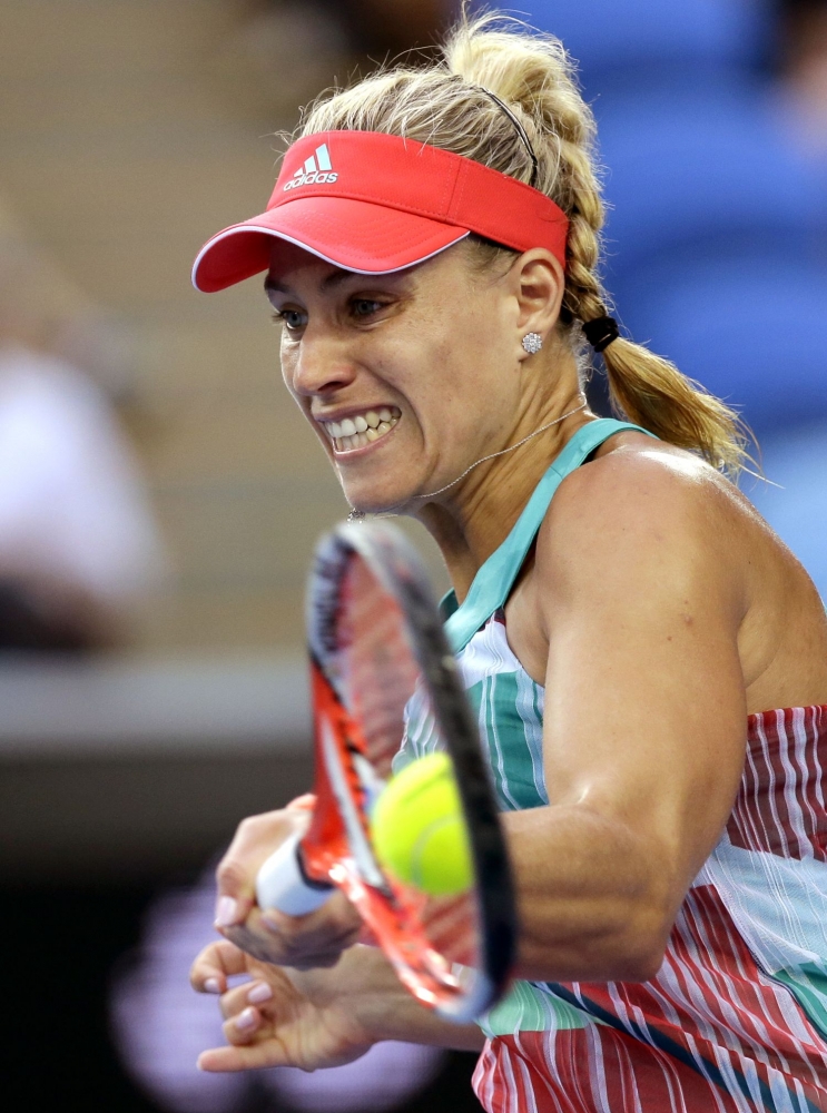 Nemecká tenistka Angelique Kerberová počas zápasu 2. kola Australian Open, v ktorom zdolala Rumunku Alexandru Dulgherovú 6:4, 6:2. Melbourne, 21. január 2016. Foto: SITA/AP