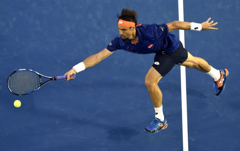Španielsky tenista David Ferrer počas zápasu 2. kola Australian Open, v ktorom zdolal Austrálčana Lleytona Hewitta 6:2, 6:4, 6:4. Melbourne, 21. január 2016. Foto: SITA/AP