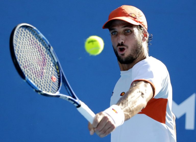 Španielsky tenista Feliciano López počas zápasu 2. kola Australian Open, v ktorom zdolal Argentínčana Guida Pellu 7:6 (2), 6:7 (4), 7:6 (3), 6:7 (8), 6:4. Melbourne, 21. január 2016. Foto: SITA/AP