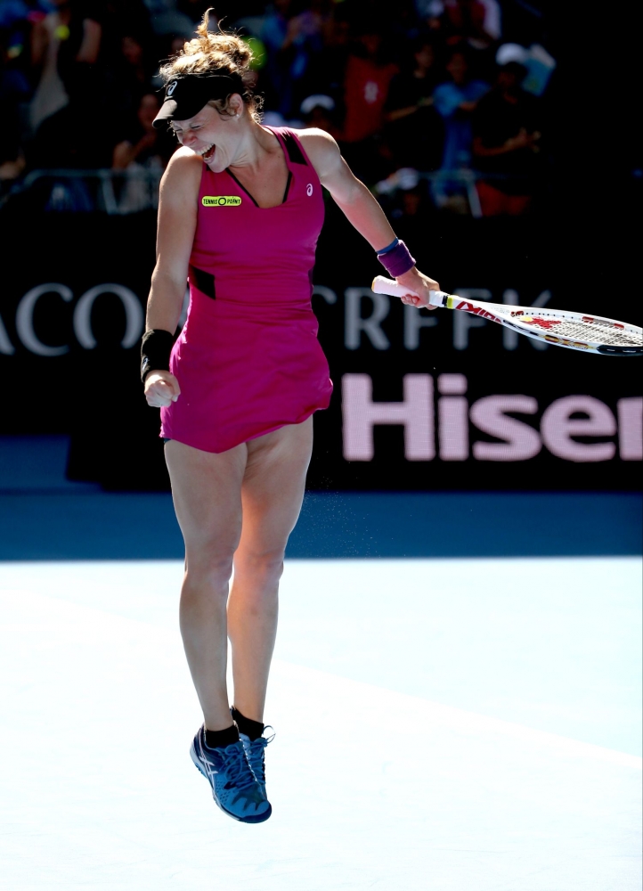Nemecká tenistka Laura Siegemundová počas zápasu 2. kola Australian Open, v ktorom prekvapujúco zdolala Srbku Jelenu Jankovičovú Jelena Jankovičová 3:6, 7:6 (5), 6:4. Melbourne, 21. január 2016. Foto: SITA/AP
