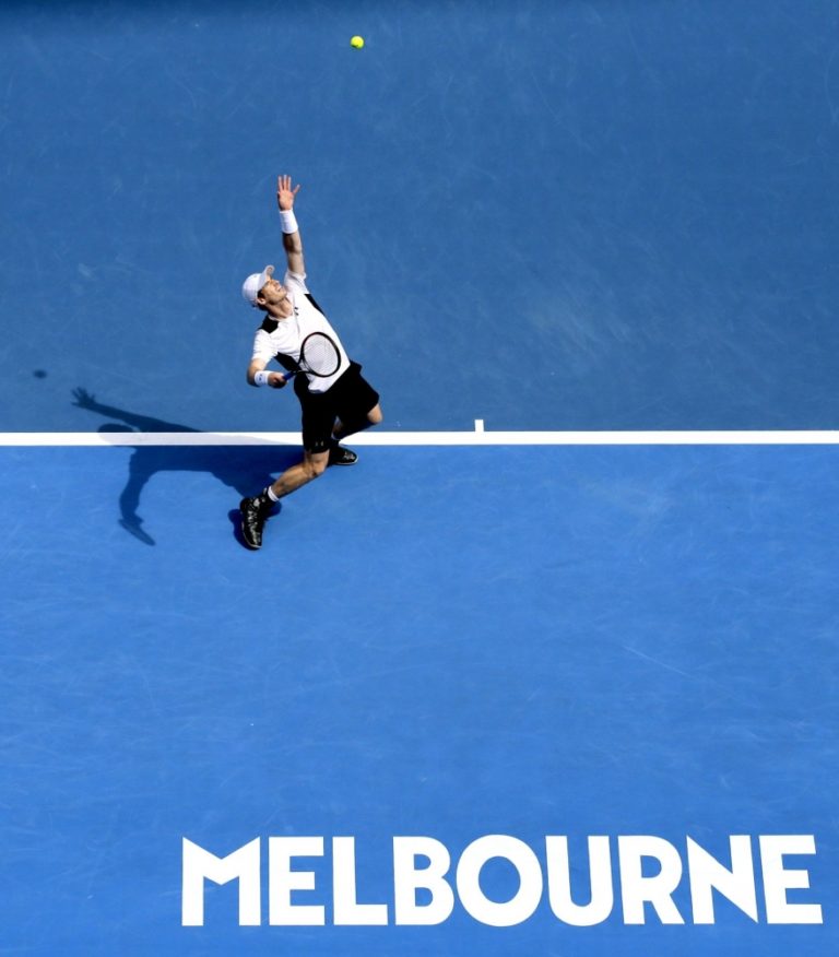 Britský tenista Andy Murray počas zápasu 2. kola Australian Open, v ktorom hladko zdolal Austrálčana Sama Grotha 6:0, 6:4, 6:1. Melbourne, 21. január 2016. Foto: SITA/AP