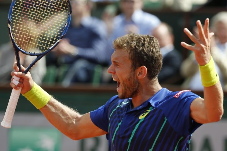 Slovák Andrej Martin počas zápasu druhého kola na Roland Garros proti Francúzovi Lucasovi Pouillovi. Foto: SITA/AP
