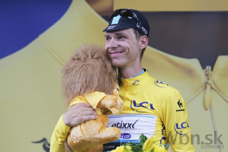 Tony Martin sa teší zo zisku žltého dresu po štvrtej etape Tour de France zo Seraing do Cambrai merajúcej 223,5 kilometrov. Foto: SITA/AP
