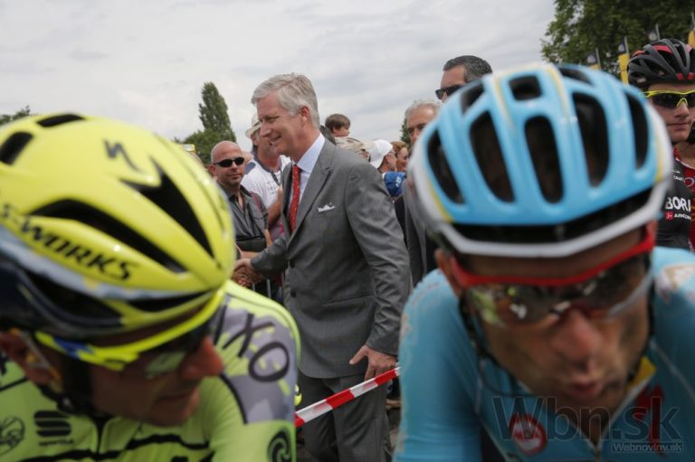 Belgický kráľ Filip (v strede) pred štartom štvrtej etapy Tour de France. Foto: SITA/AP