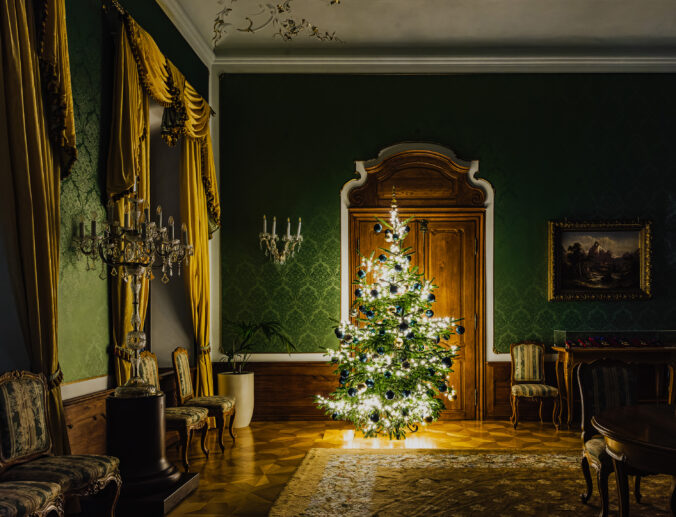 Vianočný stromček v Prijímacom salóne v Prezidentskom paláci. Bratislava, 6. december 2025. Foto: SITA/Kancelária prezidenta
