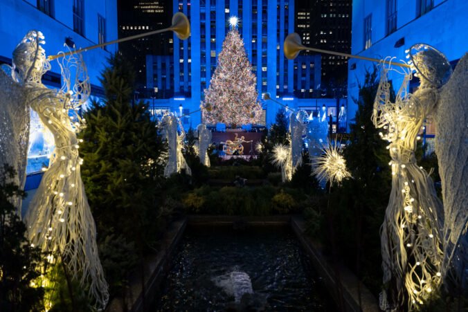 Vianočný stromček počas 93. ročníka slávnostného rozsvietenia vianočného stromčeka v Rockefellerovom centre v New Yorku. USA, 3. decembra 2025. Foto: AP Photo/Yuki Iwamura