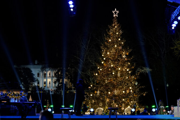 Národný vianočný stromček neďaleko Bieleho domu vo Washingtone počas rozsvietenia. Spojené štáty, 4. decembra 2025. Foto: AP Photo/Jose Luis Magana