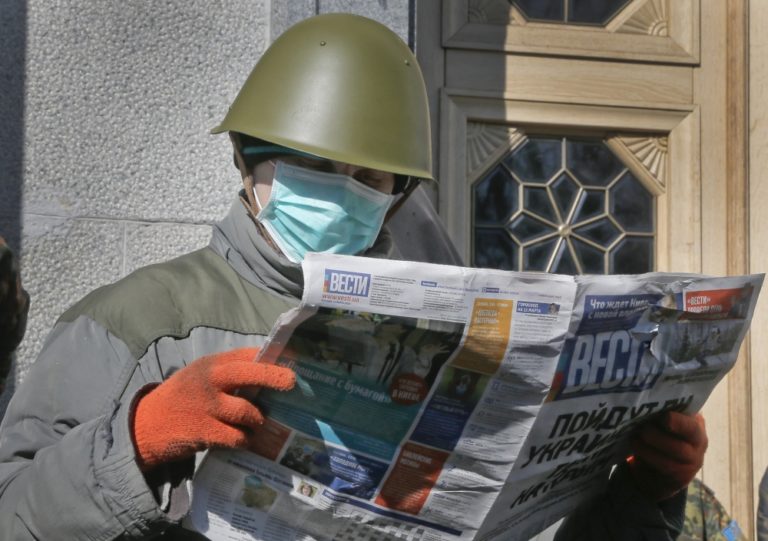 Ukrajinský prezident Oleksandr Turchynov vyzval na vytvorenie národnej gardy a na mobilizáciu rezervistov a dobrovoľníkov do ukrajinských ozbrojených síl. Ešte pred ľudovým hlasovaním o štatúte ukrajinského polostrova Krym tamojší proruský regionálny parlament vyhlásil nezávislosť územia od Ukrajiny. Foto: SITA/AP