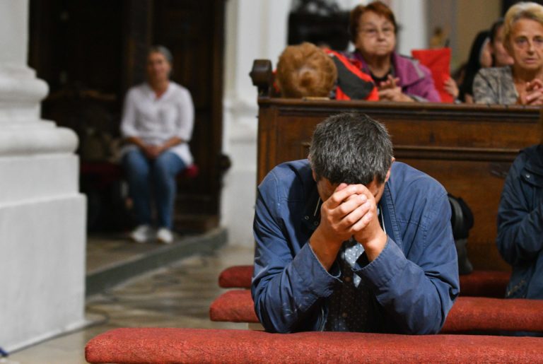 Spovedanie veriacej pred začiatkom slávnostnej svätej omše v Šaštíne-Strážach pri príležitosti Národnej púte k Sedembolestnej Panne Márii, patrónke Slovenska, ktorej sviatok si katolícka cirkev na Slovensku pripomína vždy 15. septembra. Foto: SITA/Martin Medňanský
