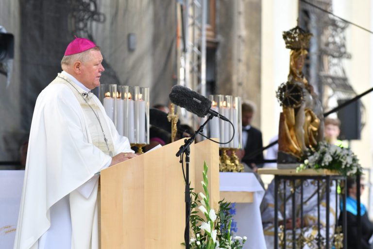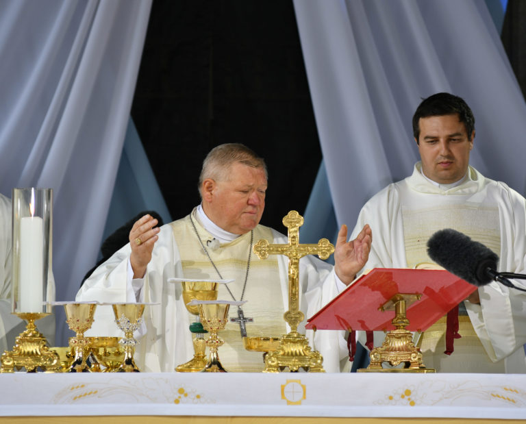 Nitriansky biskup Mons. Viliam Judák počas slávnostnej svätej omše v Šaštíne-Strážach pri príležitosti Národnej púte k Sedembolestnej Panne Márii, patrónke Slovenska, ktorej sviatok si katolícka cirkev na Slovensku pripomína vždy 15. septembra. Foto: SITA/Martin Medňanský
