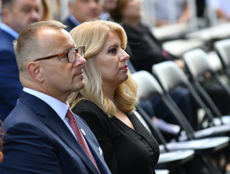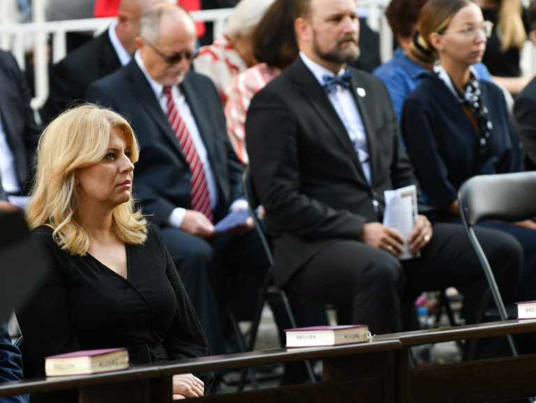 Zľava: Predseda parlamentu Boris Kollár a prezidentka SR Zuzana Čaputová počas slávnostnej svätej omše pri príležitosti Národnej púte k Sedembolestnej Panne Márii, patrónke Slovenska, ktorej sviatok si katolícka cirkev na Slovensku pripomína vždy 15. septembra. Šaštín-Stráže, okr. Senica, 15. september 2023. Foto: SITA/Martin Medňanský.