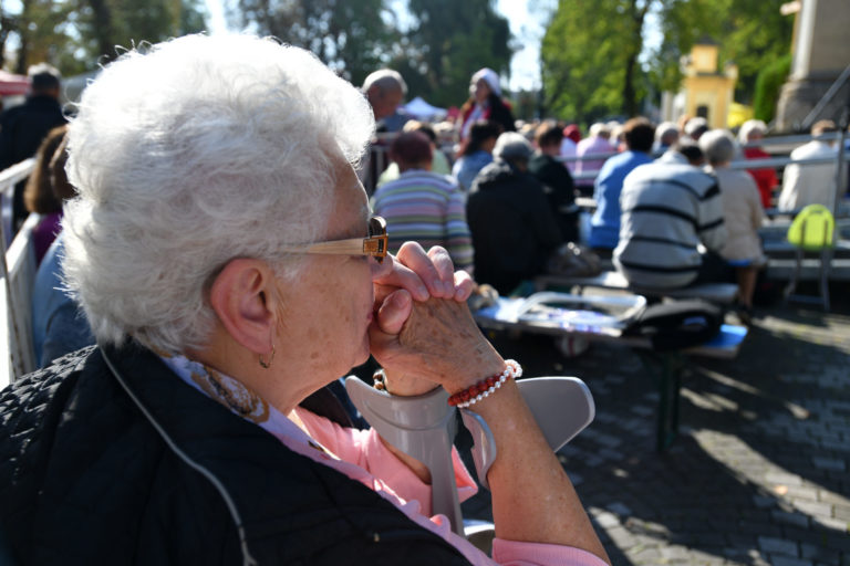 Pútnici počas Národnej púte k Sedembolestnej Panne Márii, patrónke Slovenska, ktorej sviatok si katolícka cirkev na Slovensku pripomína vždy 15. septembra. Šaštín-Stráže, okr. Senica, 15. september 2023. Foto: archívne, SITA/Martin Medňanský.