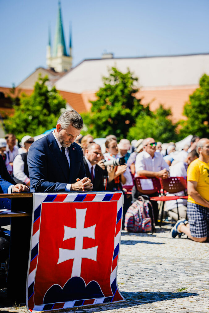 Prezident SR Peter Pellegrini počas slávnostnej svätej omše pri príležitosti Národnej púte k sv. Cyrilovi a Metodovi v rámci podujatia Nitra Milá Nitra. Nitra 5. júl 2025. Foto: SITA/Kancelária prezidenta SR
