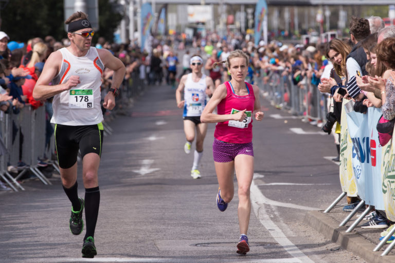 Ľubomíra Maníková (vpravo) počas 71. ročníka Národného behu Devín - Bratislava. Bratislava, 15. apríl 2018. Foto: SITA/Braňo Bibel.