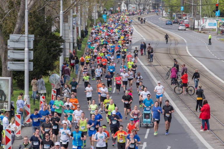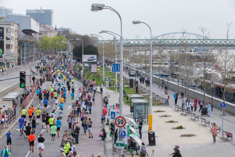 Účastníci počas 71. ročníka Národného behu Devín - Bratislava. Bratislava, 15. apríl 2018. Foto: SITA/Braňo Bibel.